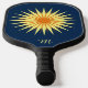 Vergnügen Sie sich mit der Retro-Sternexplosion-Blume mit Ihrem personalisierten Monogramm in Skriptschrift. Fügen Sie einfach Ihren eigenen Initial hinzu. Verlass es in sonnengelb und orange auf marineblau oder verwende das Design Tool um es beliebig farbig zu machen. Schlagen Sie den Hof stilvoll mit Ihrem eigenen Paddelpaddel! Ein tolles Geschenk für Ihren Lieblings-Pickleball-Fanatiker.