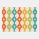 Dieses elegante Muster aus der Mitte des Jahrhunderts, das auf Ogee-Eizellen in Rot, Grün, Senf und aquamarin gelegt ist, ist eine moderne atomare Sternexplosion. Es ist eine tolle Geschenkpackung für Ihre Party.