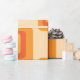 Das ist eine elegante Retro-atomare Sternexplosion Mitte des Jahrhunderts auf abstrakten Quadraten in Gelb, Orange und Rot