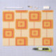 Das ist eine elegante Retro-atomare Sternexplosion Mitte des Jahrhunderts auf abstrakten Quadraten in Gelb, Orange und Rot