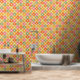 Das ist eine elegante moderne Sternexplosion aus der Mitte des Jahrhunderts, die sich auf geometrisch farbige Kreise in Rot, Orange, Olivgrün, Gelb und Rosa erstreckt. Es ist großartig aussehende Tapete für jeden, der geometrische Entwürfe zurückverfolgt