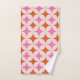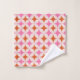 Das sind moderne atomare Sterne aus der Mitte des Jahrhunderts in rosa und orangefarbenem Muster auf weißem Hintergrund. Es ist ein tolles Badehandtuch-Set für alle, die Liebe Retro-geometrische Designs