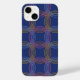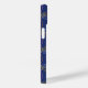 Ein gewagtes und lebendiges geometrisches Muster mit ineinander greifenden, mehrfarbigen, konzentrischen Kreisen in Orange-, Gelb-, Rosa- und Lavendeltönen auf tiefblauem marinebasischem Hintergrund.