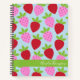 Personalisiertes Skizzenbuch mit niedlichem ästhetischen Obstmuster mit Erdbeeren in Rot, Rosa und Hellblau.