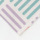 Ein farbiges und geometrisches Muster mit Blöcken paralleler Linien in einem Rasterlayout, wobei jeder Block in einer anderen lebhaften Farbe dargestellt wird. Dieses Design verbindet ein Retro-inspiriertes Aussehen mit modernem Minimalismus und macht es optisch ansprechend und unterhaltsam.
