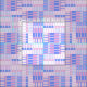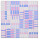 Ein abstraktes Muster mit geometrischen Streifen in blauen und rosa Farbblöcken.