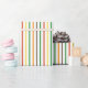 Eine Streifenfolie in allen rostigen Retrotönen. Grün, Gelb, Braun und Orange sorgen für eine elegante und doch lustige Verpackung für ein Geschenk.