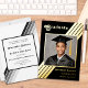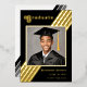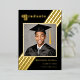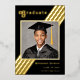 Retro Stripe Grad Foto Black und Gold Abschluss Folieneinladung