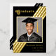 Retro Stripe Graduate Foto Schwarz und Gold Folieneinladung