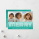 Retro Stripes in Aquamarine Blue - Merry 3 Photo Feiertagskarte
