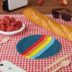 Inspiriert durch Vintage Retrostile der 80er Jahre ... Marineblau... mit roten, orangen, gelben und hellblauen Streifen... Eine tolle kleine Party-Idee... für Geburtstage, Feiern, Feiertage und vieles mehr... fügt Ihrem Tisch eine Touch Vintagen Charmes hinzu...