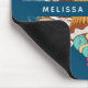 Personalisiertes Mousepad mit einer Reihe köstlich aussehender Kuchen mit Wirbel und Kirschen und leckerem Zuckerguss. Illustriert im Retro-Stil. Die Farben sind Retro-Grün, Rot, Blau und Creme.