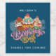 Flaschenetiketten mit einer Reihe köstlich aussehender Kuchen mit Wirbel und Kirschen und leckerem Zuckerguss. Illustriert im Retro-Stil. Die Farben sind Retro-Grün, Rot, Blau und Creme. Geburtstagsbash in einem extravaganten typografischen Schriftart geschrieben. Personalisieren mit einem Namen.