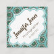 Diese stilvollen, kundengerechten aquamarinen quadratischen Geschäftskarten haben einen retro stylized aquamarinen und braunen Blumenmusterhintergrund. Der Text, in zusammenpassenden Farben, ist in einem Arabeskeart-Nummernschildbereich auf den Visitenkarten. Es gibt eine entfernbare Textplatte auf der Rückseite der Karten zu, über dem aquamarinen und braunen Blumengraphikmuster. So können Sie diesen Textbereich entfernen, wenn Sie zu wollen.