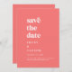 Diese Retro Sommer heiß rosa Hochzeit speichern das Datum ist perfekt für eine farbenfrohe Hochzeit. Das einzigartige moderne Vintage Design besticht durch eine lebendige, kühn rosa und weiße Typografie mit lustigen, frommen Farben.