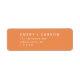 Diese Retro-Sommer-Orange-Rücksendeadressen-Aufkleber sind perfekt für eine farbenfrohe Hochzeit. Das einzigartige moderne Vintage Design besticht durch eine lebendige, fette Zitrusbraun-orange-weiße Typografie mit unterhaltsamen und funky-vibes. Diese Labels können für Hochzeiten, Brautpartys, Sonderveranstaltungen oder jedes Mal verwendet werden, wenn Sie ein persönliches Adressetikett benötigen.