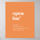 Retro Summer | Orange Wedding Open Bar Sign Poster