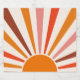 Die Retro-Sonne brach in warmen Rosa-, Braun- und Orangetönen aus. Retro moderne orangefarbene Sonnenstrahlen, Morgensonne geometrische abstrakte Kunst.