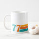 Retro vintage style sunset on extended horizontal stripe design with 77 (1977) typography in the style of the 1970s.