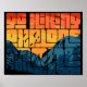Retro Sunset Landschaft Wandern neben dem Wasser Poster