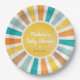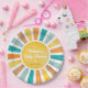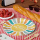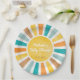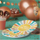 In einem Retro-Sonnenscheindesign verziert, verbindet diese Party-Platte nostalgische Ästhetik mit zeitgenössischer Funktionalität. Das Motiv ist eine atemberaubende Palette von gelben, blauen, orangen und terracotta-Tönen, die eine warme und einladende Atmosphäre direkt vor der Fledermaus schaffen.