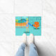 Mit dieser Retro Surfer Typ Door Mat kann jeder Tag am Strand sein. Das minimalistische Design der 1960er Jahre besticht durch einen sonnengeküssten, blonden, surfer Typ, der alle bereit ist, eine Welle zu fangen. Unser passender Surfer blickt durch die Glasschiebetüren seiner Strandpromenade-Zuhause auf das Meer hinaus. Er ist in seinem aquafarbenen Wohnzimmer stehend. Wir können ein Aqua und Türkis sehen, Steinmauer und Mitte des Jahrhunderts modernen, orangefarbenen Stuhl. Auf der gegenüberliegenden Seite der Glastür sieht man einen Innenhof. Darüber hinaus gibt es einen goldenen Sandstrand, eine schwebende Palme, einen glitzernden, pfauenblauen Ozean und einen Wasserhimmel. In der Ferne sehen wir eine aquamarine Vulkaninsel, die vorerst ruhend ist. Surfer Typ hält ein blaues Surfbrett und trägt blaue, tiki gemusterte Brettshorts. Fang ein paar Wellen und teile Liebe mit diesem kitschigen Sommerdesign!