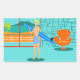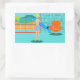Mit diesen Retro Surfer Typ Stickers kann jeder Tag am Strand sein. Das minimalistische Design der 1960er Jahre besticht durch einen sonnengeküssten, blonden, surfer Typ, der alle bereit ist, eine Welle zu fangen. Unser passender Surfer blickt durch die Glasschiebetüren seiner Strandpromenade-Zuhause auf das Meer hinaus. Er ist in seinem aquafarbenen Wohnzimmer stehend. Wir können ein Aqua und Türkis sehen, Steinmauer und Mitte des Jahrhunderts modernen, orangefarbenen Stuhl. Auf der gegenüberliegenden Seite der Glastür sieht man einen Innenhof. Darüber hinaus gibt es einen goldenen Sandstrand, eine schwebende Palme, einen glitzernden, pfauenblauen Ozean und einen Wasserhimmel. In der Ferne sehen wir eine aquamarine Vulkaninsel, die vorerst ruhend ist. Surfer Typ hält ein blaues Surfbrett und trägt blaue, tiki gemusterte Brettshorts. Fang ein paar Wellen und teile Liebe mit diesem kitschigen Sommerdesign!