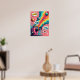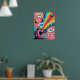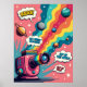 Dieses Poster transportiert Sie in eine Welt, in der Nostalgie auf die surreale trifft, zentriert auf eine klassische Retro Polaroid Kamera, die als Traummaschine fungiert. Statt Erinnerungen zu erfassen, wirft sie eine skurrile "kosmische Parade" lebendiger Planeten, Monde und mit Süßigkeiten bestrichener Himmelskörper aus. Dieses Kunstwerk ist eine meisterliche Verschmelzung von Stilen, die die fett, ultra-gesättigten Farben und knackige Linie von Pop Art mit einem surrealistischen Konzept verbindet, das die Realität herausfordert. Die gesamte Szene ist in einer Ästhetik aus der Mod-Zeit der 1960er Jahre verankert, mit einem Hintergrund explodierender Farbblöcke und spielerischer Sternexplosionen, die ihm einen unverwechselbaren Vintagen Flair verleihen. Das Ergebnis ist ein visuell faszinierendes Stück, das perfekt dazu geeignet ist, jedem Raum eine Touch von sonderbarer, kreativer Energie hinzuzufügen.
