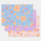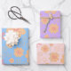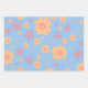 Retro Sweet Floral Muster Umhüllungspapierblätter. Der Mix und das Spiel von sanften blauen Farben mit anderen süß beruhigenden sanften Farben lila und pink, perfekt für die, die mädchenhaft und weiblich sind. Hübsch und romantisch mit dem Retro-Orange-Blume-Muster.