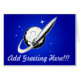 Retro Cartoonartrakete und -mond entwerfen auf vollständig kundengerechter Karte. Redigieren Sie einfach den Gruß auf der Front und Mitteilung nach innen für zu einem Geburtstag oder zu jeder möglicher anderen Gelegenheit.