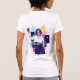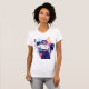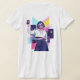 This vibrant graphic tee features a cool, anime-inspired girl holding a phone, styled with a retro-futuristic synthwave aesthetic. The design uses bold geometric shapes and a bright neon color palette of pink, yellow, and blue. It is a perfect choice for teens and women who love modern digital art, urban streetwear, and 80s-inspired fashion.