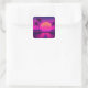 Ein neonbeleuchteter Sonnenuntergang mit einer Retro-Synthwave-Ästhetik, mit einem gitterartigen Horizont, der in die Ferne verblasst, mit Palmen, die gegen den Himmel versilbert sind. Die Farbpalette besteht aus einer Mischung aus Rosa, Püree und Blues, die einen 80er-Retro-futuristischen Stil verleiht.