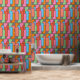 Eine Tapete mit Retro-Thema und Vintagem Ambiente, die eine harmonische Mischung aus Elementen bietet, die eine nostalgische und spielerische Atmosphäre schaffen.