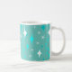 Eine Tasse mit einem Retro-Sternmuster in aquamarin-weiß auf einem aquamarinen Hintergrund.