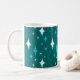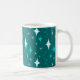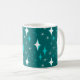 Eine Tasse mit einem Retro-Sternmuster in aquamarin-weiß auf dunklem aquamarinem Hintergrund.