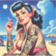Retro Tattooed Bikini Summer Button up Aufkleber