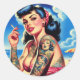 Retro Tattooed Bikini Summer Button up Runder Aufkleber