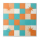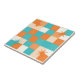 Step into mid-century modern vibes with this bold retro checkerboard pattern in vibrant teal and warm orange hues, accented by creamy off-white and soft peach tones. Playful starburst shapes in matching colors explode across the grid, adding a dynamic pop of atomic-era energy. This groovy geometric design radiates fun, nostalgic charm perfect for a statement-making touch.