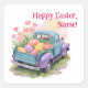 Retro Teal & Purple Truck with Easter Eggs Quadratischer Aufkleber