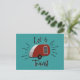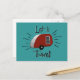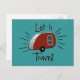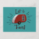Das Retro-Design auf dieser Postkarte erinnert an die Printwerbung aus den 50er und frühen 60er Jahren mit einem Teardrop-Camper in Vintagem Rot und Silber und der Phrase "Reisen Lassend!" Aus meinem digital erstellten Original-Bild.