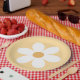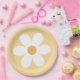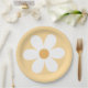 Retro inspirierte Teller zum ersten Geburtstag mit den 70er Jahren Stil-Gängen und boho Schriftart und Farben.