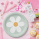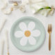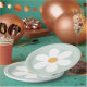 Retro inspirierte Teller zum ersten Geburtstag mit den 70er Jahren Stil-Gängen und boho Schriftart und Farben.