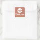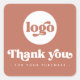 Square Business danke Ihnen Aufkleber mit dem Text "Danke" in einem Retro-Stil Schriftart und personalisierbaren Text "für Ihren Kauf". Weißer (oder benutzerdefinierter) Text auf Terracotta-braunem Hintergrund. Laden Sie Ihr Logo hoch. Mit dem Designwerkzeug können Sie Farben ändern, Elemente verschieben und verändern.