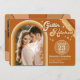 Diese lustige und fröhliche Hochzeitseinladung ist perfekt für die Sommersaison. Das Retro-Sonnendesign mit Typografie aus den 70er Jahren mit einem Arkadepaar und drei weiteren Fotos auf der Rückseite. Die Farbgebung umfasst Terrakotta, Orange, Senfgelb und Beige. Es ist spielerisch, einzigartig, boho und Hippie. Es ist das perfekte Design, um in jedem Herzen Ihrer Gäste ein fröhliches Ambiente zu schaffen. ***WICHTIGE HINWEIS FÜR DESIGN: Für jede individuelle Designanforderung, wie z. B. passende Produktanforderungen, Farbänderungen, Platzierungsänderungen oder andere Änderungswünsche, benachrichtigen Sie den Designer. Sie können ihr sogar eine Anfrage für ein komplett individuelles und neues Design schicken.