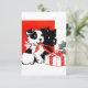 Circa 1930 Kunstwerke, die ein Schwarz-Weiß-Paar schottischer Terrier und ein Weihnachtsgeschenk darstellen.