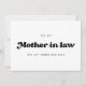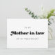 Eine einfache und minimalistische Geschenkkarte, um eine persönliche und herzliche Nachricht für Ihre Schwiegermutter an Ihrem Hochzeitstag zu schreiben. Vollständig anpassbar mit Ihren Lieblingsfarben (Text und Hintergrund). Sie können eine Nachricht auf der Rückseite hinzufügen, oder sie leer verlassen, wenn Sie Ihre Nachricht lieber später handschreiben möchten.