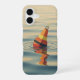 Stilisierte Tonne, die auf einem ruhigen Meer in einer Vintage-Ästhetik schwimmt.