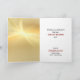 Auf der Vorderseite dieser Holiday Grußkarte befindet sich ein Vintage-Bild des Weihnachtsmannes in seiner Spielzeugwerkstatt. Der Weihnachtsmann ist damit beschäftigt, ein Puppenhaus zu malen. Im Text unten steht "Frohe Weihnachten". Das Bild wird auf einem hellen goldenen Farbverlaufshintergrund platziert und in rot mit einer dünnen goldenen Linie umrahmt. Die Innenseite der Karte hat den goldenen Hintergrund auf dem links und die andere Seite ist weiß, mit benutzerdefinierten Textfeldern für Ihre Nachricht und Unterschrift unten. Feiern Sie Weihnachten auf die altmodische Art mit dieser schönen Karte, die ein Bild aus vergangenen Zeiten zeigt.