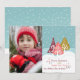 Eine schneebedeckte Retroszene mit drei abstrakten Bäumen macht eine schöne Urlaubskarte, wenn sie mit Ihrem Foto personalisiert ist.