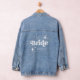 Diese modische Dim Jacke mit feinem, weißem Retro-Typografie, die "Bride" mit eleganten Boho-Sternen sagt. Fügen Sie Ihren Namen hinzu und haben Sie die perfekte Jacke, um den Hochzeitstag der Braut zu behalten oder um sich mit dem gesamten Brautparty abzustimmen.